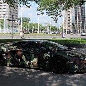 This Lamborghini Aventador with jungle camouflage would be right at home out in the woods creeping up the enemy’s position. But it’s a good job it is staying within the limits of the city, as the sound of its V12 engine would give its own position away miles in advance.