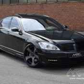 Other goodies fitted to this MEC Design Mercedes S-Class W221 include a bespoke grille, a 4 pipe stainless steel sports exhaust sound version “Earthquake”, and an interior package consisting of wood/leather steering wheel, a business desk, extra wood trims, and velour floor mats with edging in nubuck leather.