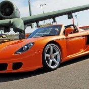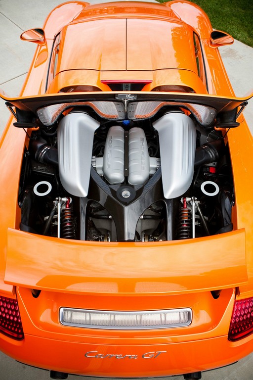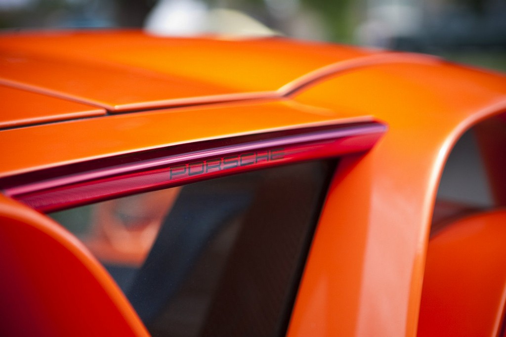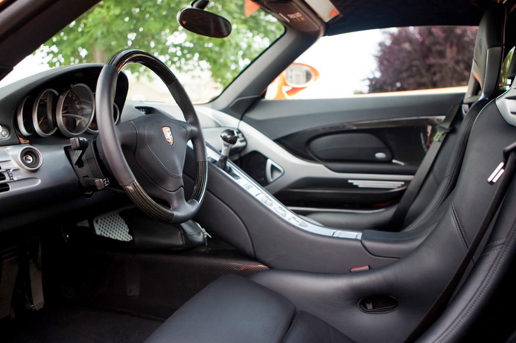 The Lambo Orange Porsche Carrera GT also has a unique interior with carbon fiber accented steering wheel and gear lever. Again, it’s cool, but the original wood lever which was a Le Mans tribute is still a more popular feature.