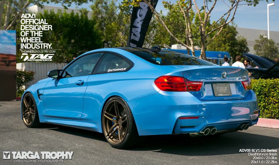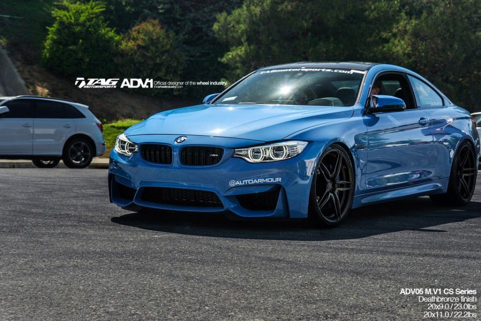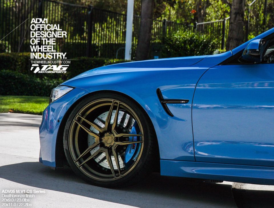 TAG Motorsport BMW M4 features a set of CS Series ADV05 wheels in size 20×9 front and 20×11 inch rear. They are finished in a dark shade of bronze ADV1 calls “DeathBronze” and it’s really cool, although we can’t help but thing they would work better on a car with darker color.