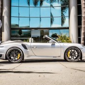 The work begins with a software upgrade form GIAC, complemented with a complete exhaust with headers and RSR style tips from GMG Racing. The same firm also supplies the lowering kit, contributing both to handling and styling. A TechART Type II rear spoiler is the only body work needed to be done.