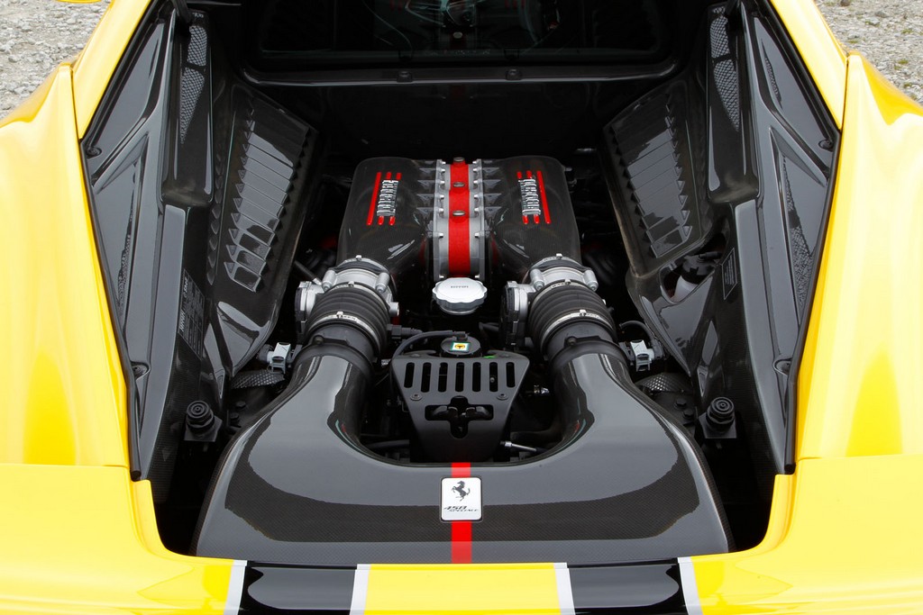 The 4.5 liter naturally-aspirated V8 engine in the Ferrari 458 Speciale, which is the last of this breed, generates 600 horsepower and nearly 400 lb-ft of torque. Those numbers in plain English mean the 1,400 kg sport car can accelerate from 0 to 62 mph in 3 seconds and reach a top speed of 202 mph, while average 23 mpg.
