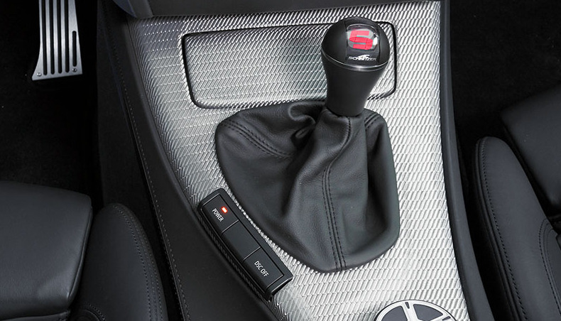 For the interior AC offers various bits and bobs, including gear knob comes with digital gear display, illuminated in leather or as a “Black Line“ aluminium gear knob, “Black Line” aluminium handbrake handle, aluminium pedal set, AC Schnitzer foot rest, keyholder and velours foot mats.