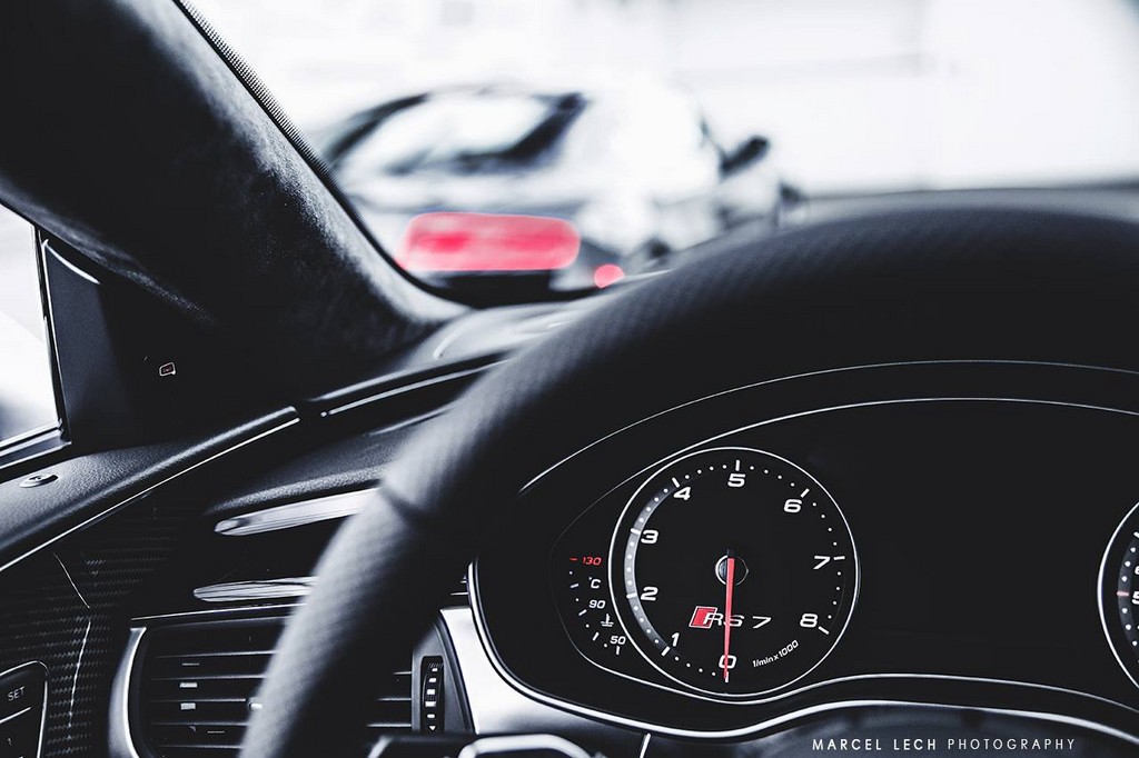 The cars in Audi Powerhouse shoot included the Audi R8 super car and the RS7 high performance four-door coupe. Both cars feature a cool dark metallic grey paint job which is probably why Marcel Lech went for a cold and slightly dark theme. It suits the character of these Audis. They are serious, performance-oriented machines.