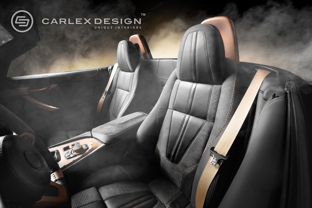 Carlex doesn’t usually mess with the exterior, but in the case of BMW Z4 Punk Z they had to come up with a matching look for the body, otherwise it’d look silly. What they settled on is a matte black wrap for the body and copper for the roof, and a set of bronze wheels.