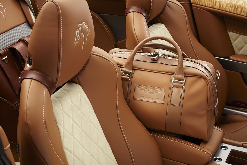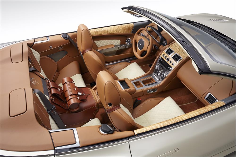 The special Aston Martin DB9 Volante by Q looks pretty much stock on the outside, but features a bespoke interior featuring Saddle Tan Luxmill leather from Q Heritage palette, contrasted with Diamond quilted Ivory Alcantara.