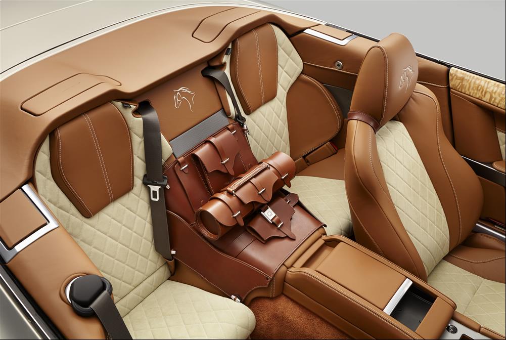 Seeing as this car has to appeal to equestrian enthusiasts, it also comes with authentic equestrian saddle leather rear storage, and unique horse logo embroidering on the front head restraints and rear console.