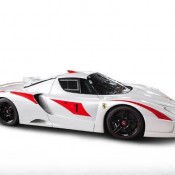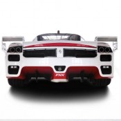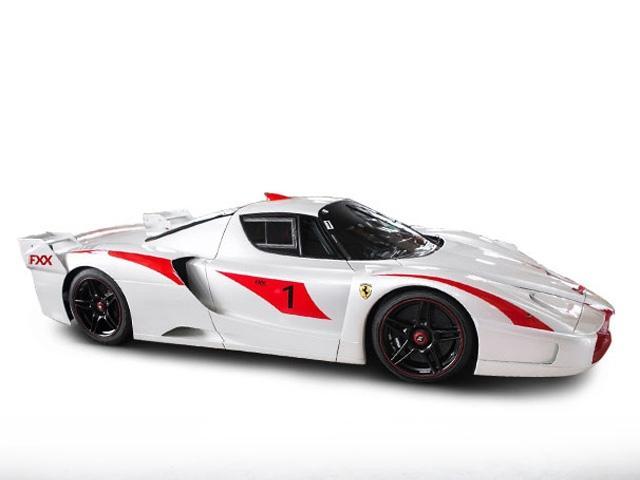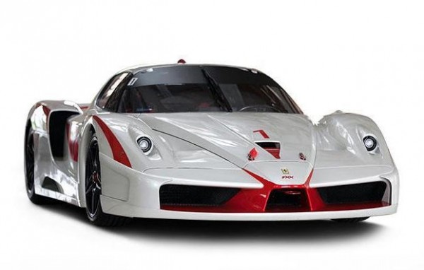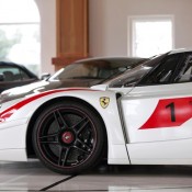 This car is Ferrari FXX Evoluzione racing number 1, and it was originally a normal FXX in Rosso Corsa. Later on they fitted with the $300,000 Evoluzione package which added uprated suspension, transmission, electronics, and a bigger rear wing.