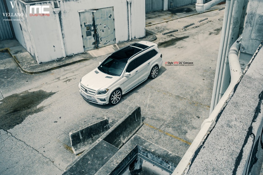 The kit is complemented with a set of Vellano VTV 24″ Concave wheels, finished in white to match the exterior color. These wheels are huge, but still they look kinda normal under the GL, which gives you an idea about the sheer size of this SUV.