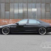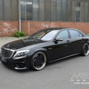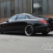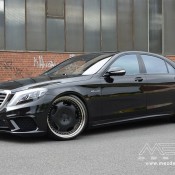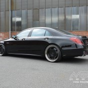 Apart from the wheels MEC Design Mercedes S63 AMG also gets a lowering module that is a vital part of what gives the car its sexy looks. Without it the S63 would look kind of clunky on those unique wheels. So right on there. Another nice touch is the fact that MEC has painted all the chrome parts on the exterior in matte black, giving the car a stealthy look.