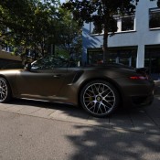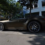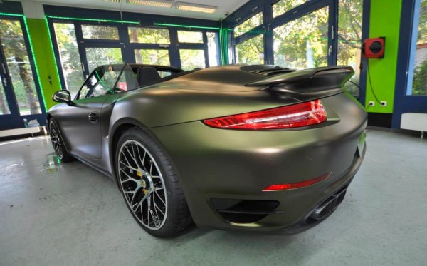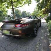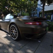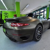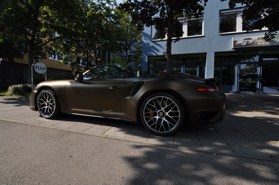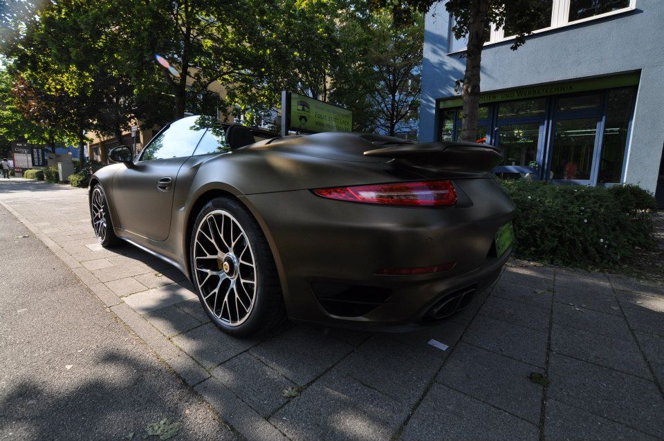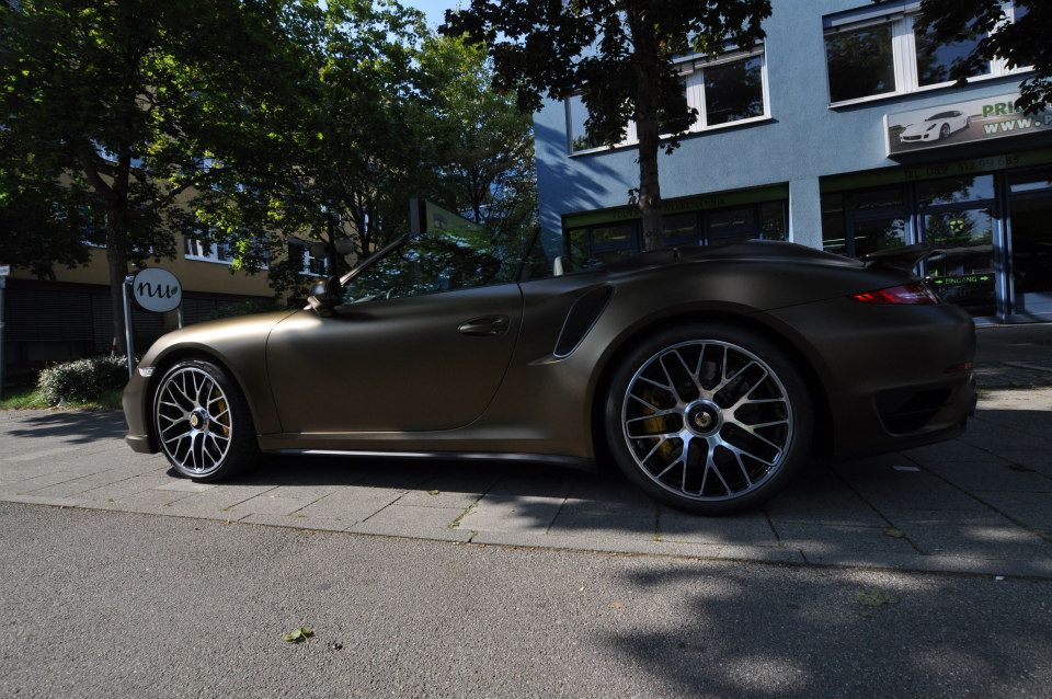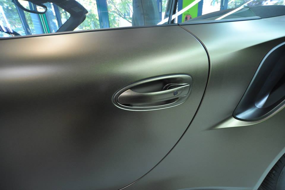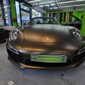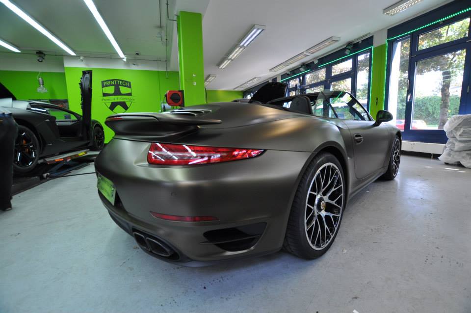 Applied to a Porsche 991 Turbo S cabriolet, Print Tech’s Bond matte gold is basically a shade of gold brushed to the verge of going green. It is certainly unique, but we are not sure if it is also beautiful. Such colors aren’t to everyone’s taste, which is kind of the whole point of wrapping the car actually. The wrap reflects the taste of the owner.