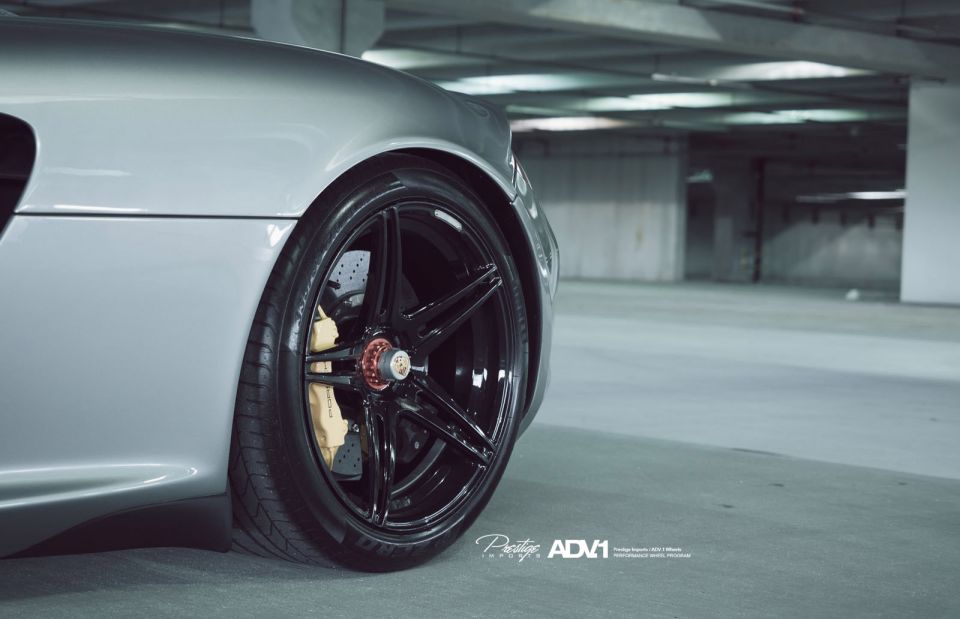The wheels he chose for the silver Porsche Carrera GT are gloss black ADV05.1MV1SL models, and as you can see they look awesome on the car. That is not saying much, because ADV1 wheels look awesome on pretty much anything.