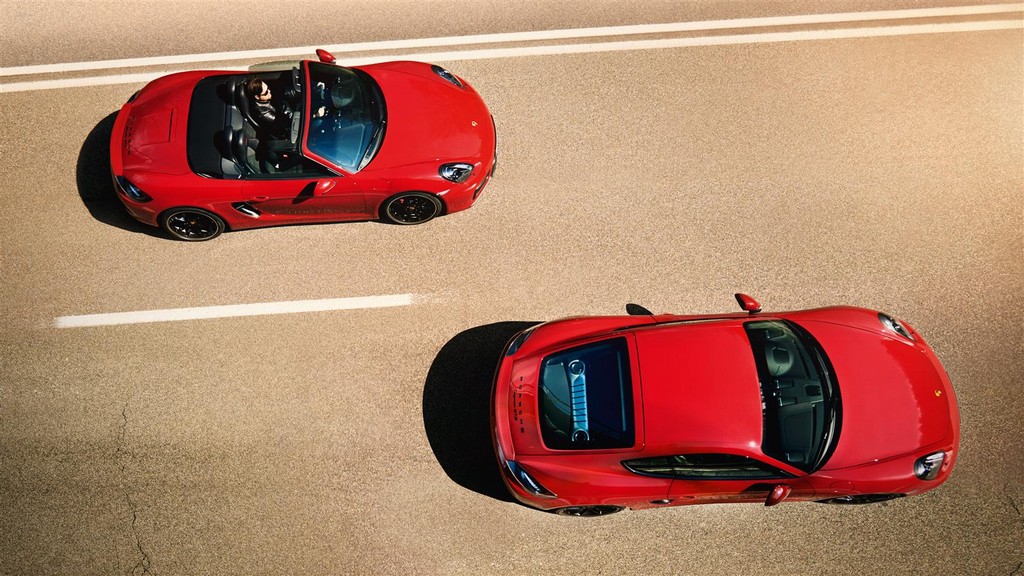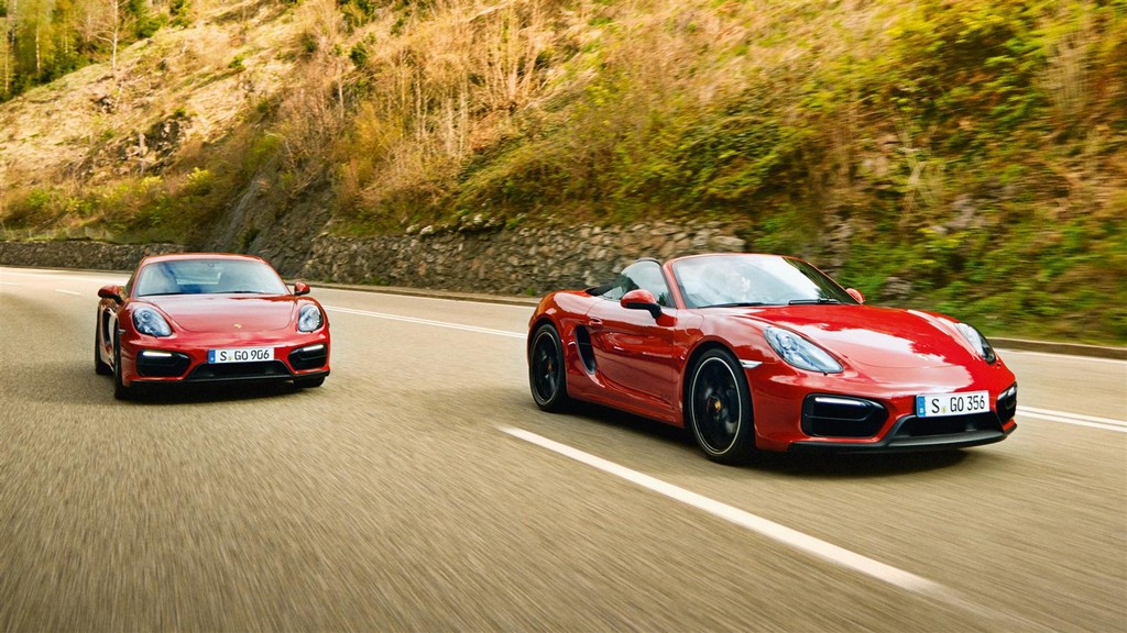 Before you check out the pictures, let us give you some facts and figures to think about while you browse: Porsche Cayman GTS boasts 340 hp and 380 Nm of torque. When equipped with Porsche double-clutch transmission, it can accelerate from 0 to 100 km/h in 4.8 seconds and reach a top speed of 285 km/h. Porsche Boxster GTS packs 330 hp and 370 Nm, goes from 0 to 100 in 4.9 seconds, and tops 281 km/h. The Boxster also gives you access to nine million miles of sky thanks to a soft-top.