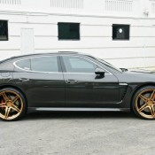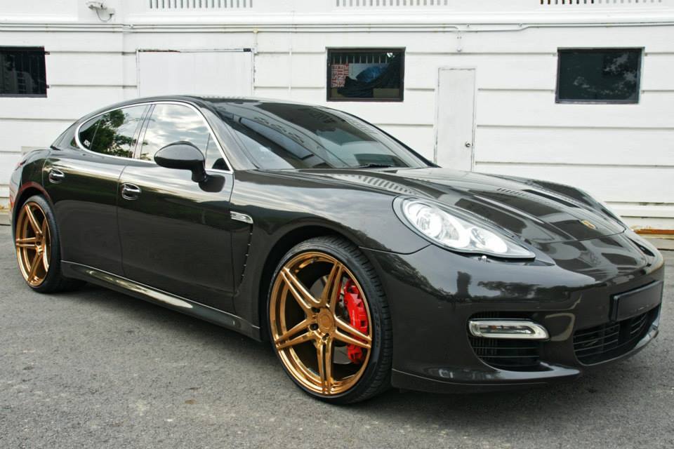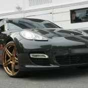 We have to be honest it is really hard to like the idea of a car like the Porsche Panamera, in black, with gold wheels. It is just not cool. But the owner of the car who ordered it like this probably had his reasons – standing out in public, probably.