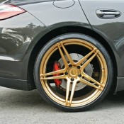 The polished gold wheels fitted to this Porsche Panamera Turbo by KBS Motorsport are ADV05 M.V1 models in size 22 x 10.5 inch at the front and 22 x 12.0 inch at the back. They would have looked awesome if they were matte black.