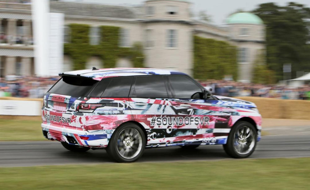 As promised, Land Rover’s new special operations unit unveiled their first ever creation at the Goodwood Festival of Speed in form of the Range Rover Sport SVR. The car that turned up at the event was a camouflaged prototype, but it couldn’t have done a better job promoting the car.