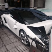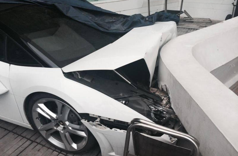 This sad-looking Lamborghini Gallardo Spyder was handed to the valet at Le Méridien hotel in New Delhi in perfect condition with not a scratch on it. The guy then got into the car and, evidently, just floored it. Not only is the front end of the car pretty much gone, you can see in the pictures the concrete wall is damaged as well!
