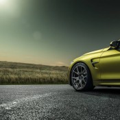 The wheels chosen for the Vorsteiner BMW M4 are VSE-003 forged in size 20×10 at the front and 20×11 at the back rocking an awesome gunmetal finish. The car itself features an Austin Yellow finish, which is striking for sure, but not the perfect match for those wheels.