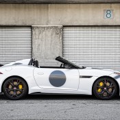 The American Jaguar F-Type Project 7 comes with a larger windscreen due to U.S. safety regulations. Tou can order the car in white, red, black, blue or green, but they not like ordinary colors. They are all bespoke colors developed by Jaguar Special Operations team and they all have fancy names. Special stripes and graphics complement the paint job.