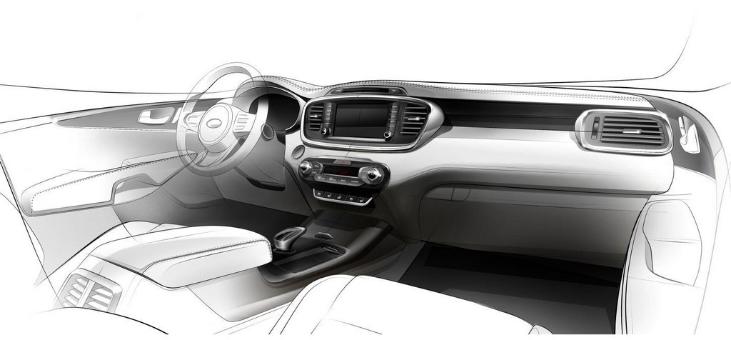 A few days ago Kia revealed the looks of their new Sorento SUV in a couple of official design sketches. They are now flowing that up with another drawing showcasing the interior design. Premium is the keyword here, as the cabin boasts significant improvements in terms of design and material.