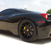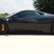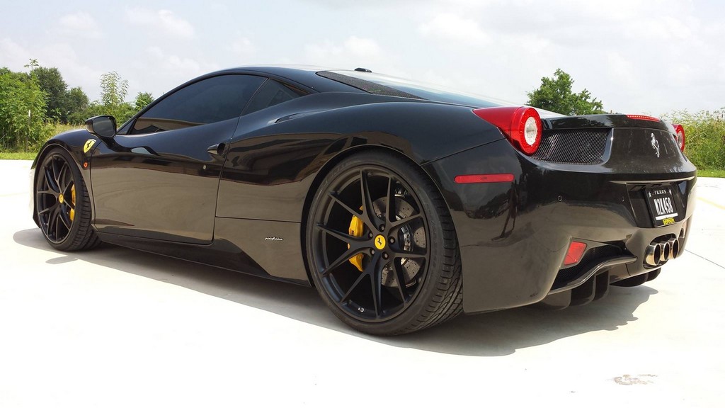 M2K’s Black on Black Ferrari 458 Italia features a set of HRE Performance Wheels model P101 Monoblock in satin black, matching the deep metallic finish of the exterior. Whereas a red Ferrari is a marked car for the highway patrol, this ghostly 458 can go past the cops at 200 mph without them even noticing.