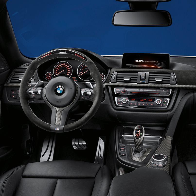 Inside the car you will find an M steering wheel wrapped in Alcantara and garnished with LED rev lights and a digital gear indicator display, high-end leather upholstery, and sport steel pedals plus carbon fiber trimming on the console.