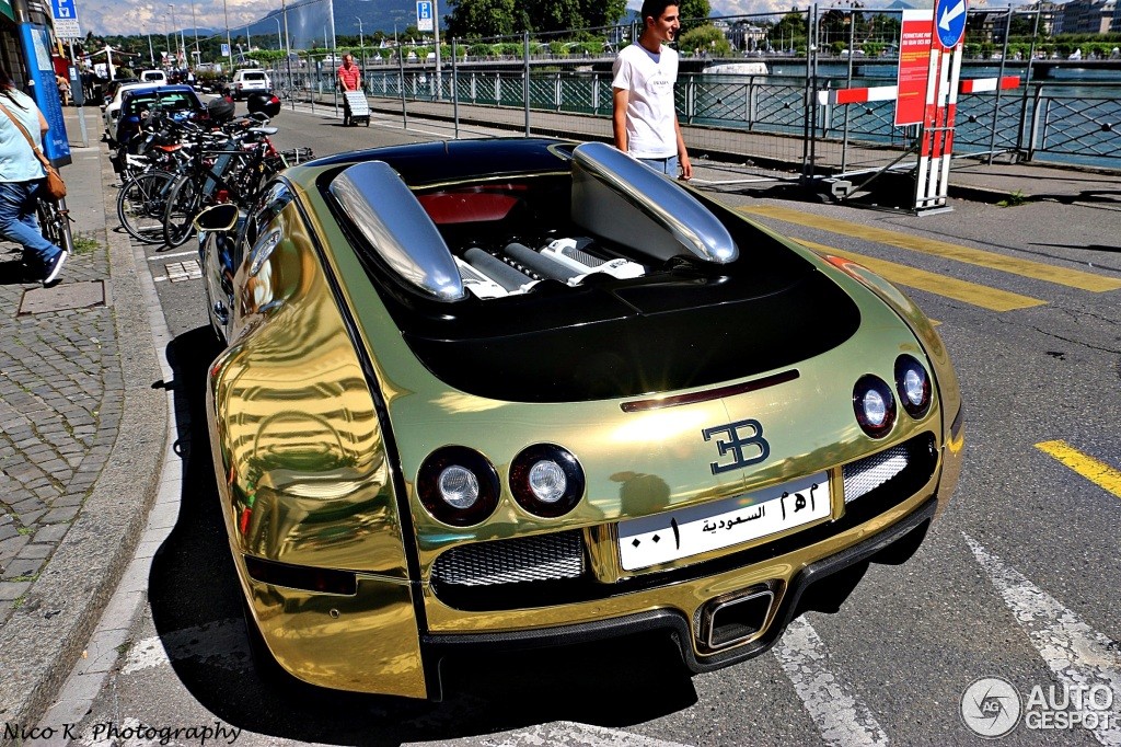 And it doesn’t get much more wonderful than this. Here on a back street in Geneva, Switzerland, spotters scooped a Golden Bugatti Veyron rocking Saudi 001 number plate, which means the fella behind the wheel is a very high-ranking royalty.