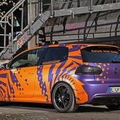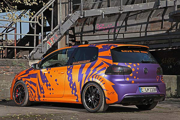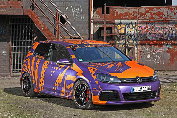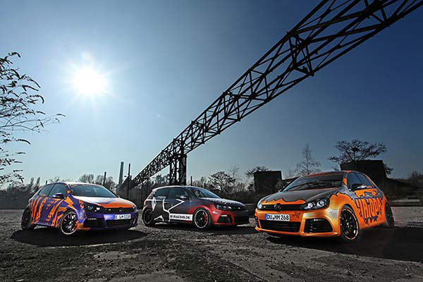 So they went straight to Cam Shaft whose reputation in the wrapping business leaves you in no doubt they are one of the best. The designs Cam Shaft came up with for Haiopai Racing Clubsport Golfs are quite interesting, with two cars wrapped in an range based garnished respectively with purple and grey graphics, and one featuring a two-tone white and red, accented with grey.