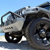MC Customs Jeep Wrangler has a unique body style with what appears to be a removable compartment at the back, bolt-on fender flares, custom bumpers, guards and running boards, and Kevlar paint finish which gives the whole thing an awesome look.