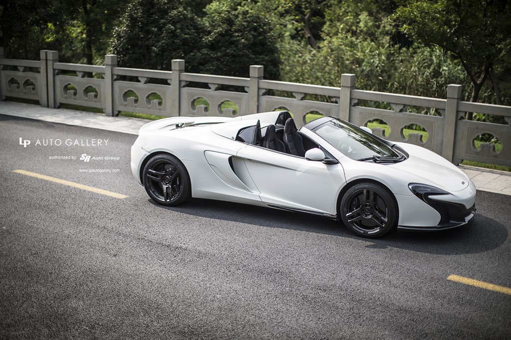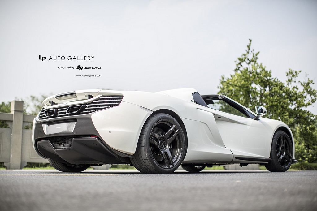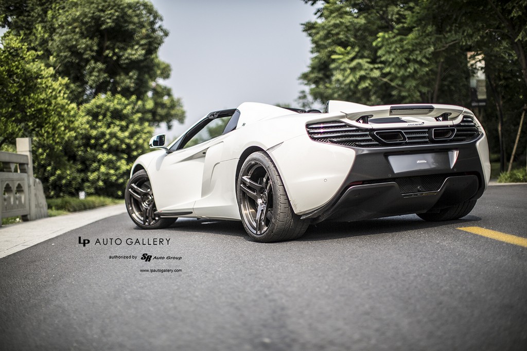 SR Auto Group’s Chinese partner LP Auto Gallery has come up with a unique wheel treatment for the McLaren 650S. The British super car gets a set of PUR 5IVE three-spoke wheels in gloss black whose unusual design give the 650 a bold new look.