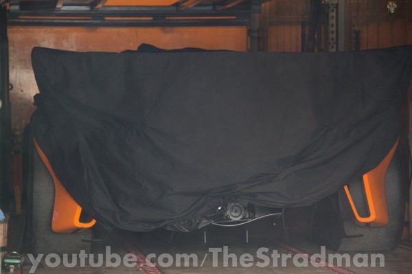 But that’s not all you have to go with until Sunday. Photographer Stradman managed to scoop a mysterious car under wraps at Pebble Beach. We’re not 100 percent sure, but all the evidence (large rear wing, the form of the rear bumper and diffuser, and the McLaren orange color) suggest this is indeed the highly anticipated McLaren P1 GTR.