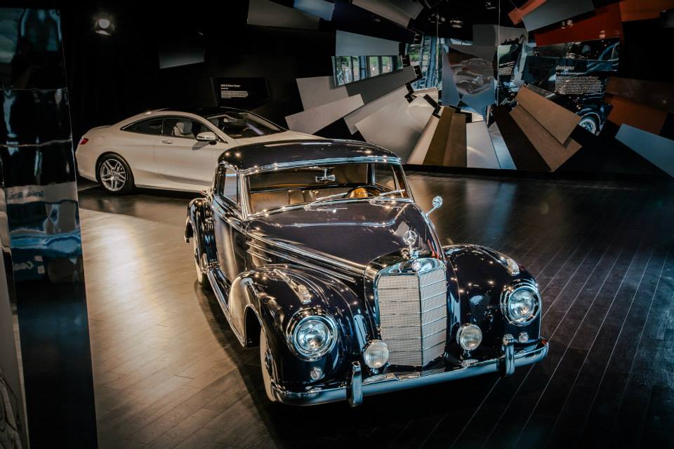 As we mentioned in the previous report, the most prominent feature of Mercedes’ display at 2014 Pebble Beach was the restored 540 K Streamliner from the 30s. This supercharged super-coupe can be considered as the forefather of the SLS. It was joined on the lawn by a number of other classic models, including 540K Roadster, a couple of old SLs, and one of the oldest cars made by Daimler.