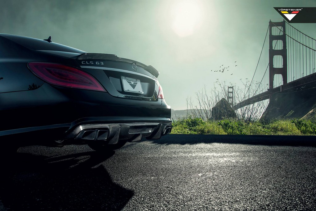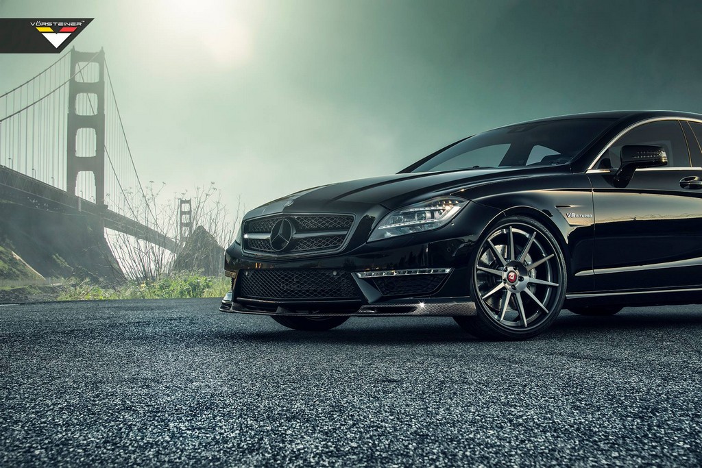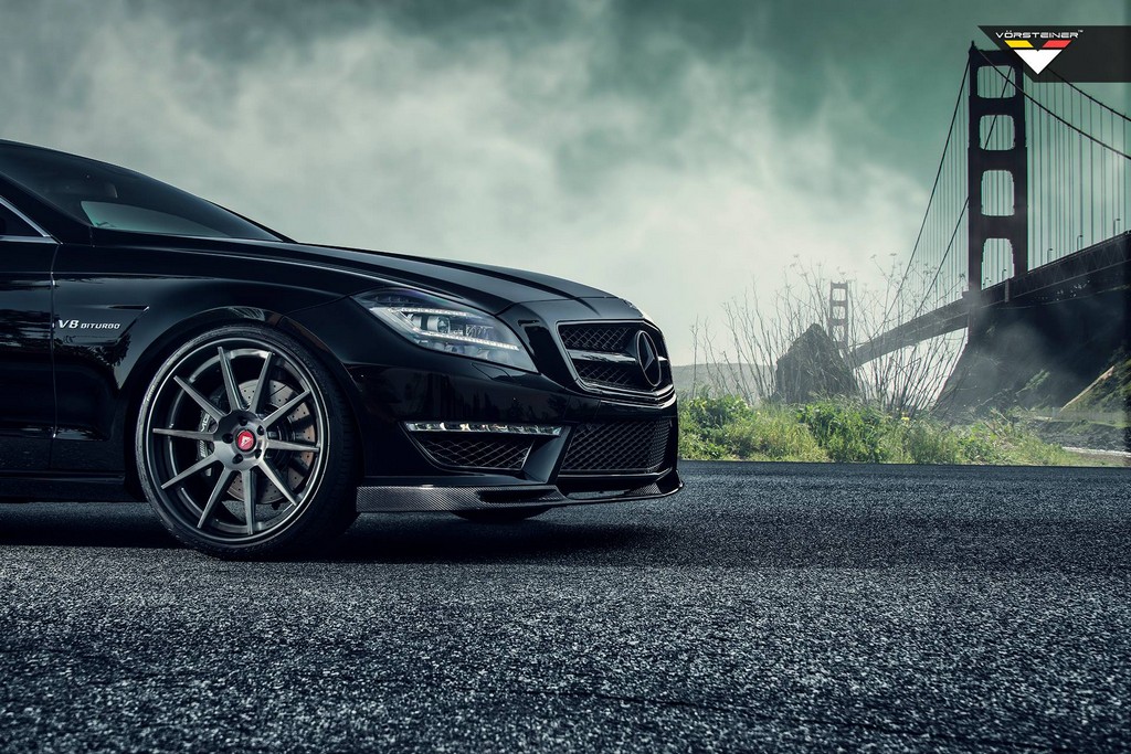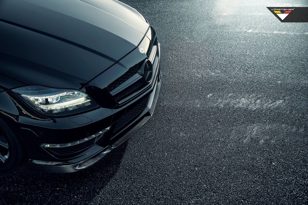 American tuner Vorsteiner released pictures of an Obsidian Black Mercedes CLS 63 AMG they have specially prepared using a selection of high-end components. They have pieced together a subtle and very cool carbon fiber body kit for the car, and also fitted a set of their own VSC wheels.