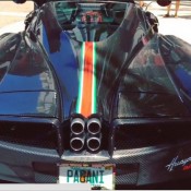 The first pictures of Singh’s Pagani Huayra La Monza that have hit the web show a seriously good-looking Huayra finished in bare carbon fiber with matching weaves and as shiny clear coat, garnished with the Italian Tricolore flag artfully applied to the front, the roof and engine cover, as well as the sides. The combination of the carbon body with shiny steel wheels gives the La Monza an absolutely marvelous look.