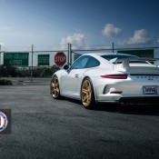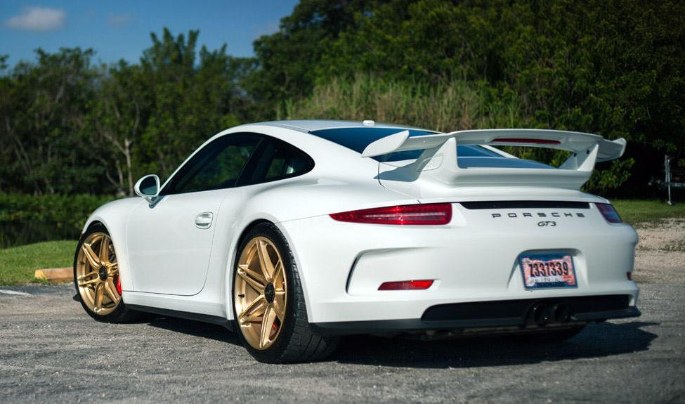 Porsche 991 GT3 would be the last car you’d think of that can benefit from gold wheels. The design and character of the car makes sober colors more suitable for it. But WB decided now that they are doing it, they should do it right.