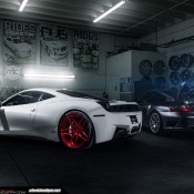 The red-wheeled Ferrari 458 Italia gets the ADV005 MV2SL wheel models in sizes 21×9 inch front and 22×12 inch on the rear. Since the color of choice for the rims was gloss red, the guys at Wheels Boutique who prepared this car painted the brake calipers white to make them stand out. This shows these guys put a lot of thought into every project they do.