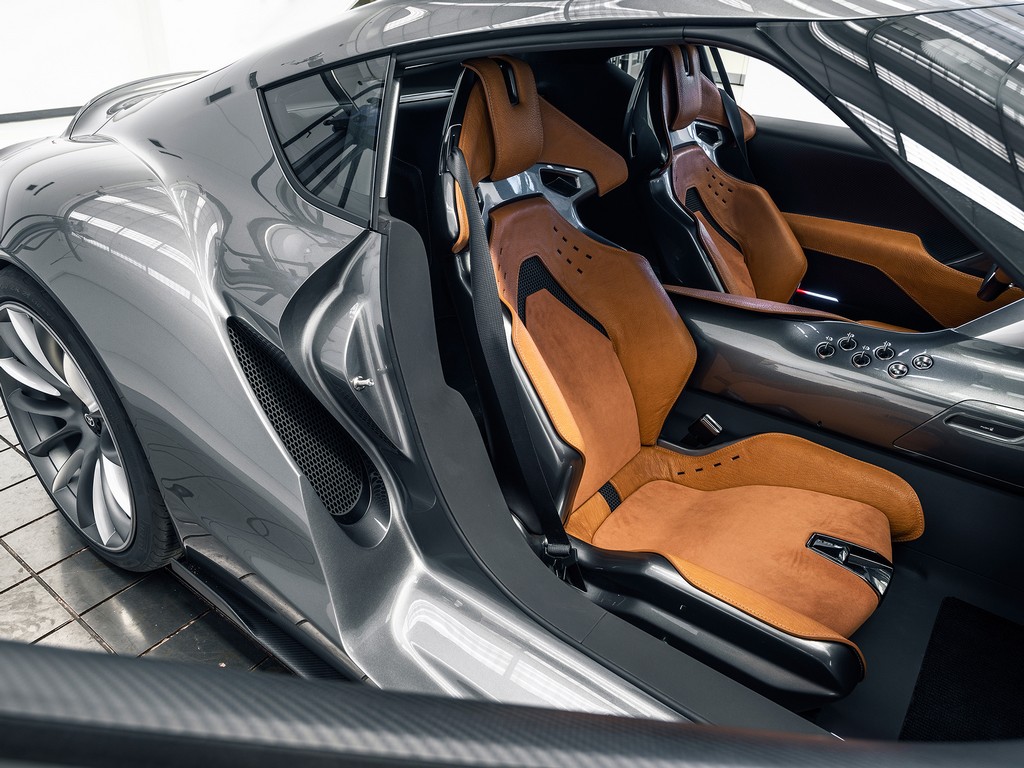 Apart from the fancy new exterior color, Toyota FT-1 Graphite also comes with a new and more luxurious interior. Instead of the black and red theme of the first concept, this one features natural brown leather on the seat is supple with an all-natural grain, giving it an authentic appeal. The design of the cabin is, apparently, inspired by superhero costumes!
