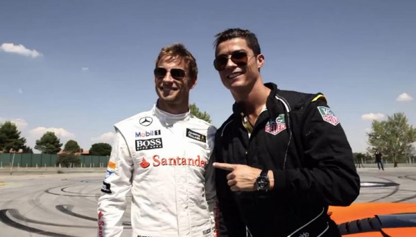 In this footage you see Jensen Button giving Cristiano Ronaldo a quick tour of Circuito del Jarama near Madrid in a McLaren 650S, before letting him loose in a McLaren P1. Ronaldo, the ungrateful sod, then tries to hit Button on the head with a football while does smoky donuts!