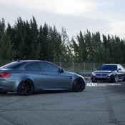 The rims on this Mercedes S63 AMG are ADV005 M.V2 CS series with exposed titanium hardware and brushed finish, in sizes 22×10 inch up front, 22×11.5 inch out back. They feature a very classy five double-spoke design which is revealing enough to let you catch a glimpse of those red brake calipers behind them.