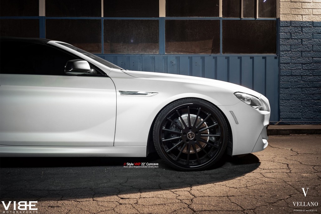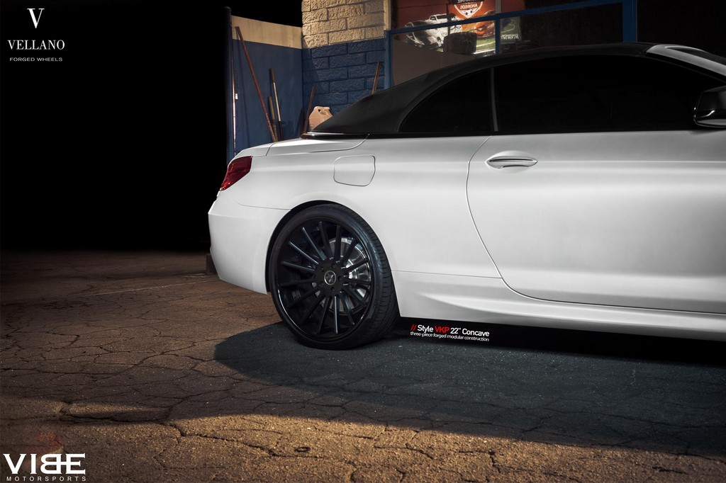 Check this out as an example of what we’re on about. Here’s a BMW 6-Series Convertible, equipped from the factory with the M Sport pack. It is fitted by Vibe Motorsport with a set of 22-inch Vellano VKP Concave wheels in black, and it couldn’t have been more brilliant.