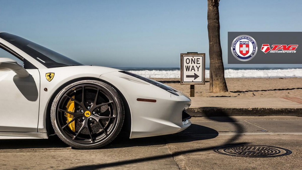 As always with HRE works, the setup is flawless in the way it looks and the execution is perfect. The space between the wheels and fenders is just perfect for a super car and the wheel size is spot on. As for the color, while satin black goes well with almost any paint job, it looks especially fine with white. Mind you, the yellow brake calipers, center caps, and Ferrari emblems also help.
