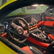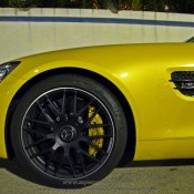 Both cars feature black AMG wheels but whereas the blue one has red brake calipers, the yellow AMG GT rocks yellow calipers. These photos will give you an idea how different color combinations work on this car, so when you are speccing up yours at the AMG studio you can do it faster!