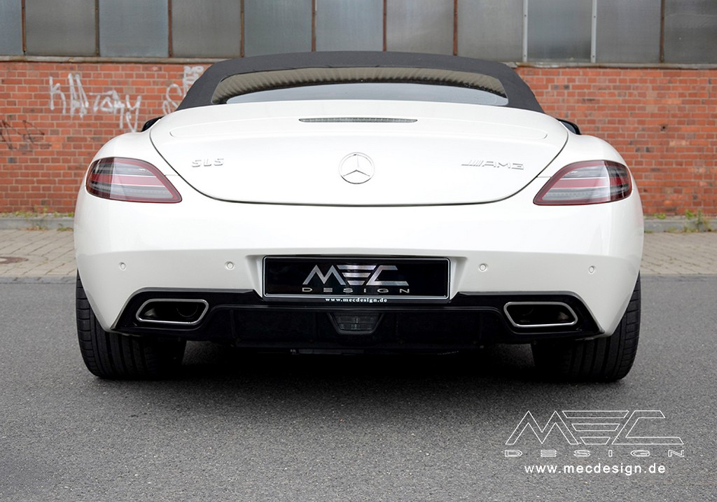 MEC offers a 3-piece front spoiler lip for the original SLS front bumper, costing 1,189 Euros in standard and 2,889 Euros in carbon finish. It goes well with the MEC Design “Extreme” look diffuser for the original SLS rear bumper, priced at 1,189 Euros in standard and 3,189 Euros in carbon finish.