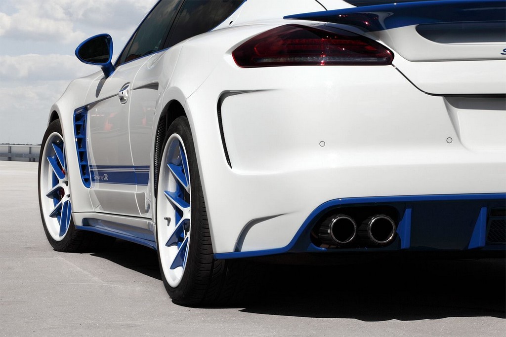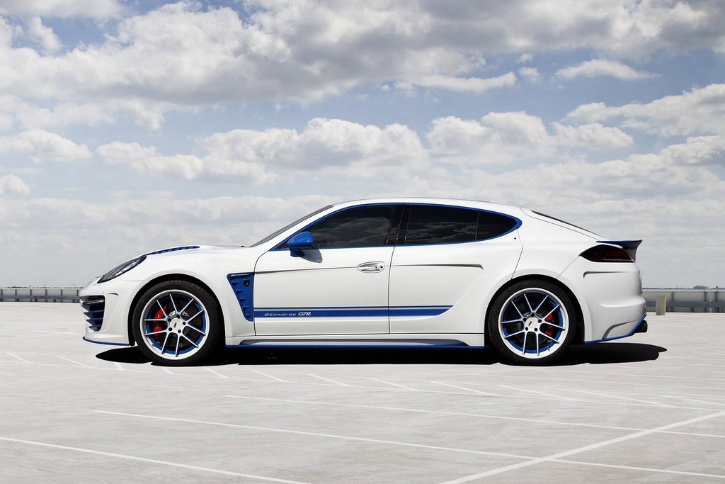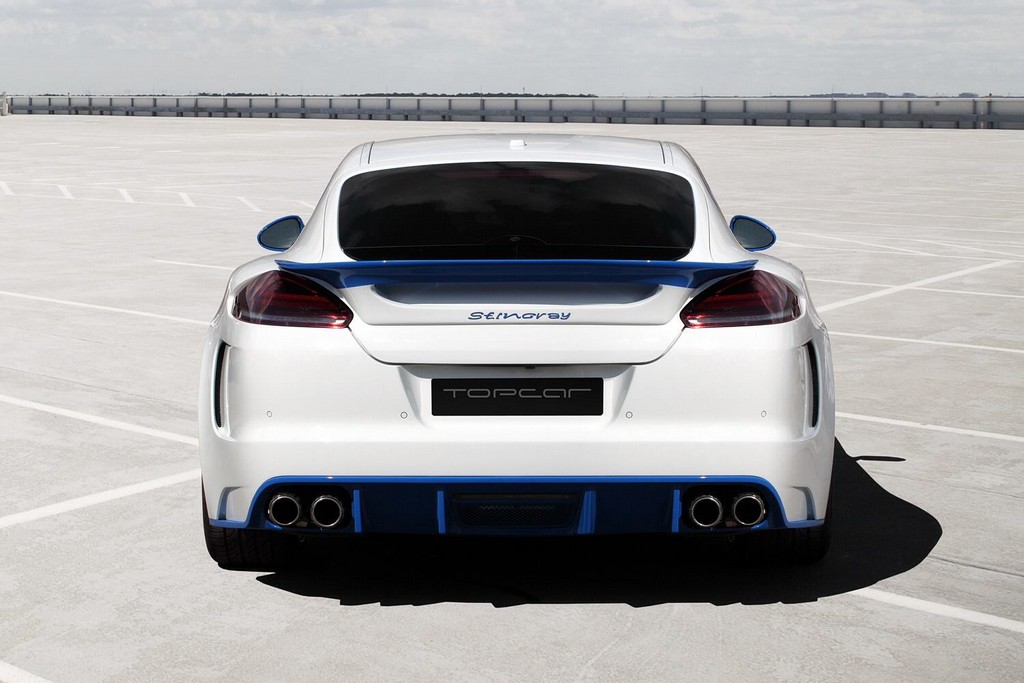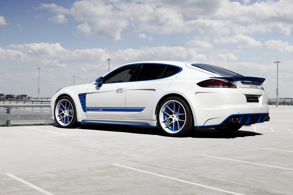 TopCar Porsche Panamera Stingray GTR comes with a full package consisting of front bumper with large intakes, extra grilles, and spoiler lip, rear bumper with integrated diffuser, side skirts, revised wings, door panels complete with air ducts, hatch spoiler, roof spoiler, sport hood and exhaust tips.