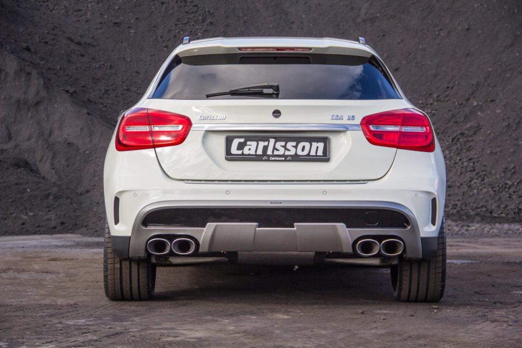 The styling package Carlsson designers have prepared for the GLA sits on the stock AMG body panels and enhance their visual impact. There is the three-piece stainless steel grille, spoiler lip, side skirts, rear apron with a diffuser insert and four round tailpipes.