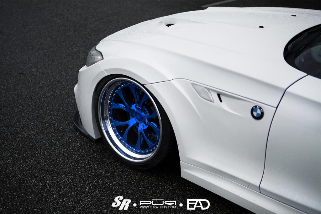 When they finished bolting not he kit, they realized those huge fenders on this wide body BMW Z4 were in dire need of some properly huge wheels to fill them up. So SR Auto got in contact with their partners at PUR Wheels, and they sent a set of LG02 rims over to get the job done.
