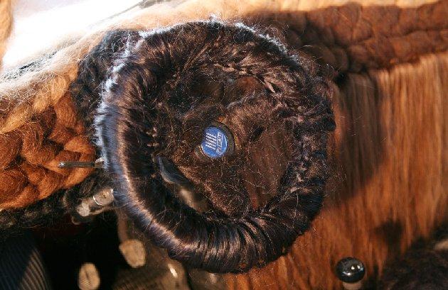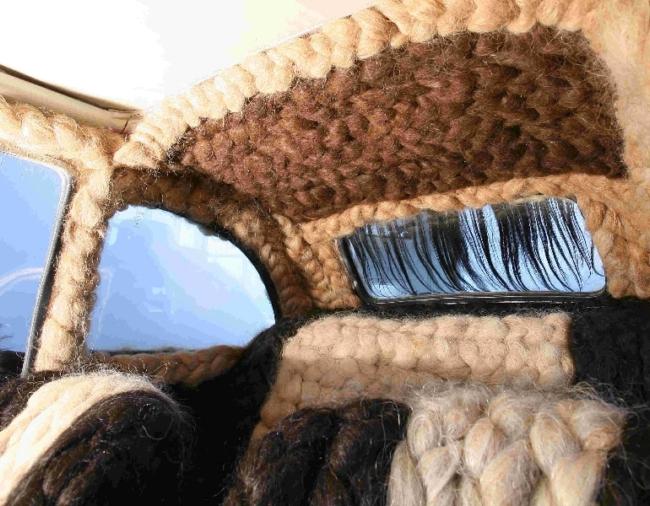 As you’d expect, this project was the result of a bet. Nobody in their right mind wakes up one morning and thinks maybe I should put some hair on my car today. Apparently a friend of Maria once said she can’t cover a car in human hair, so the middle aged woman, having nothing better to with her time, took up the challenge. Once she had all the hair she needed, it took Maria and her assistant 150 hours to glue them to the car.