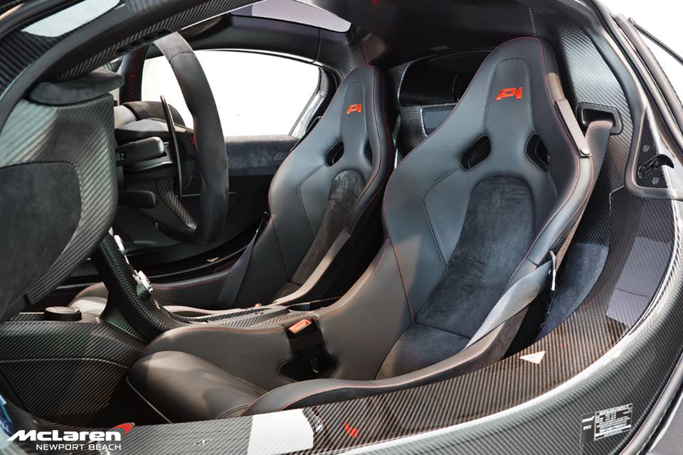 The most notable MSO features on this P1 include: Gloss Black wheels, Carbon Fiber Instrument Cluster Top, Carbon Fiber Vent Bezels, Red painted “P1” logo on Carbon Fiber Engine Cover, Red “P1” embroidery on Seats, “Stealth” finish Rear Deck Vents, “Stealth” finish on Exhaust Tip Bumper Guard, and Titanium Exhaust Tip.