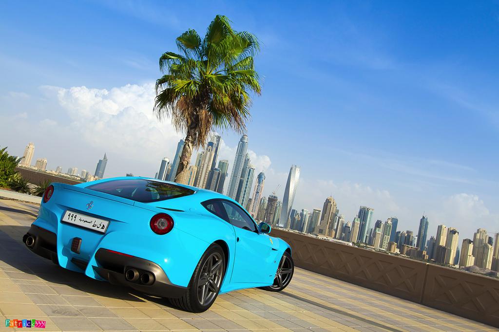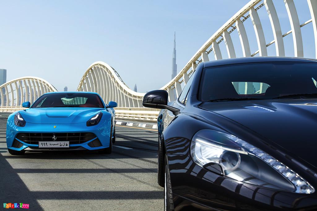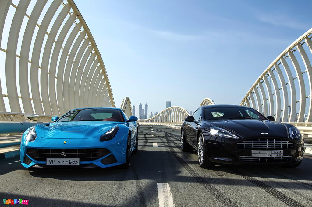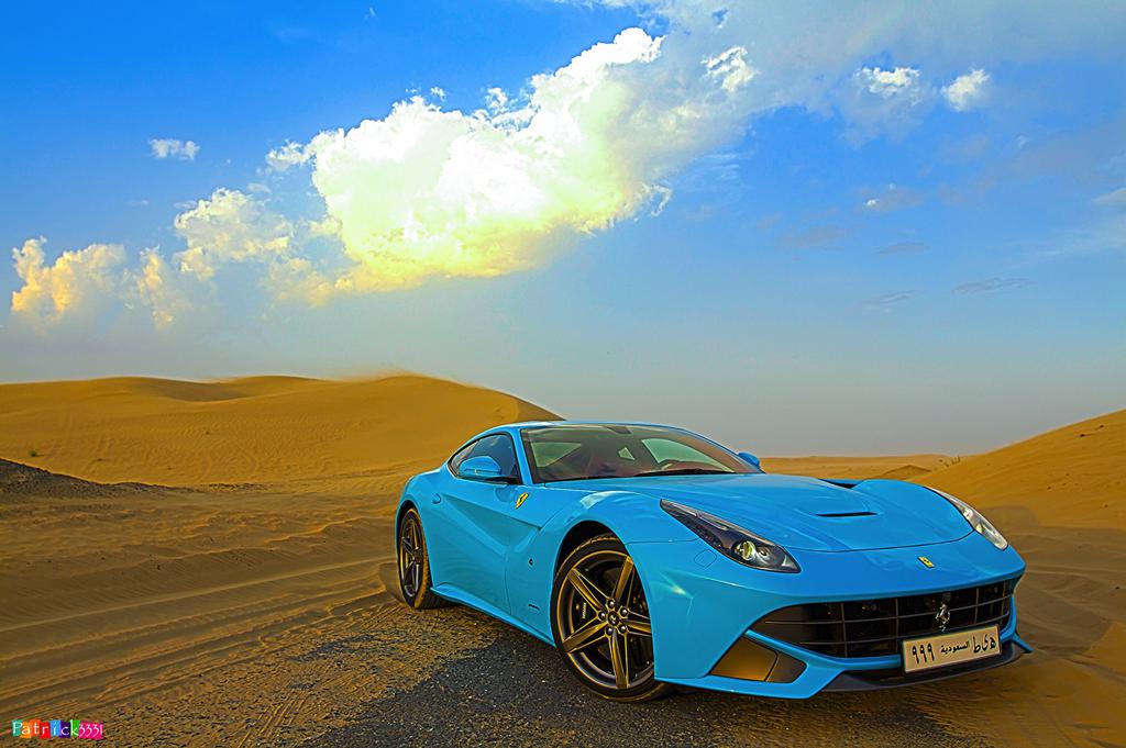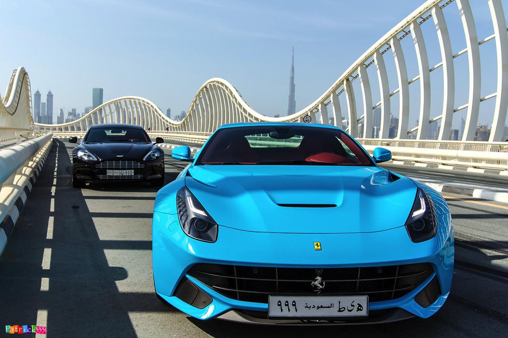 This baby blue Ferrari F12, as you would expect, is an Arab super car. These guys are huge fans of wild body kits and even wilder paint works. Rocking a brown interior and matte black wheels, this Saudi F12 recently visited Dubai where it became the subject of an awesome photoshoot in the city and the desert in company of an Aston Martin Rapide.