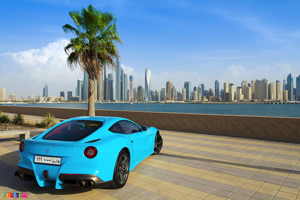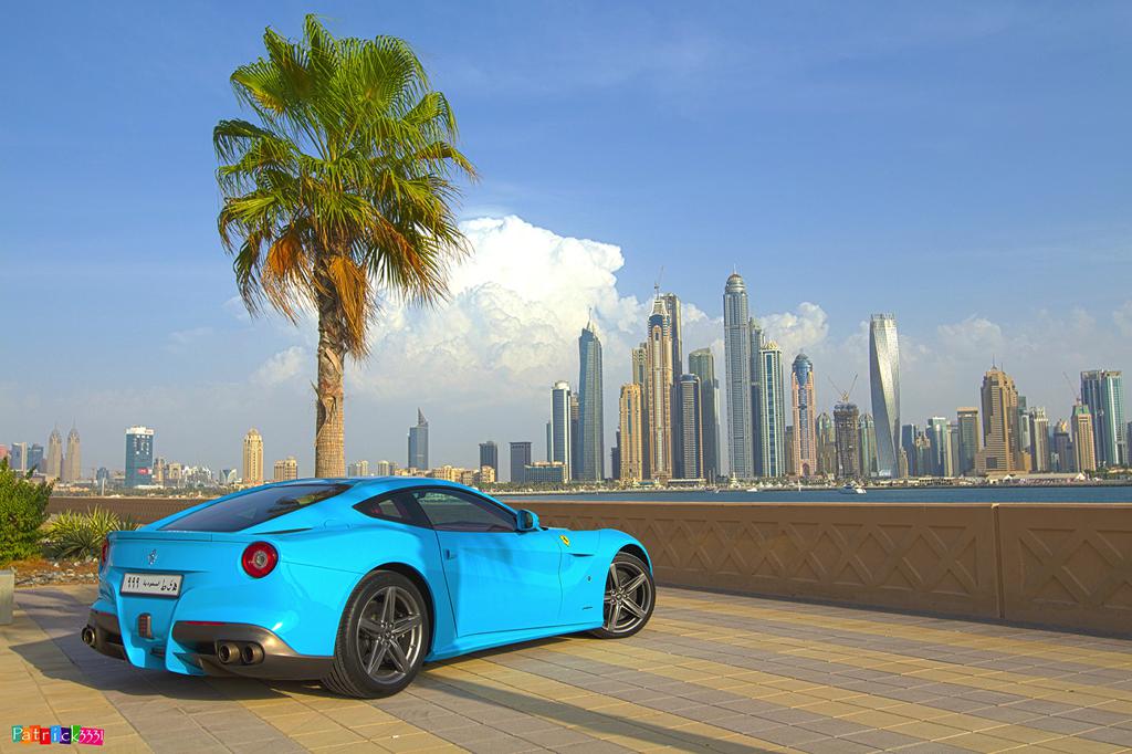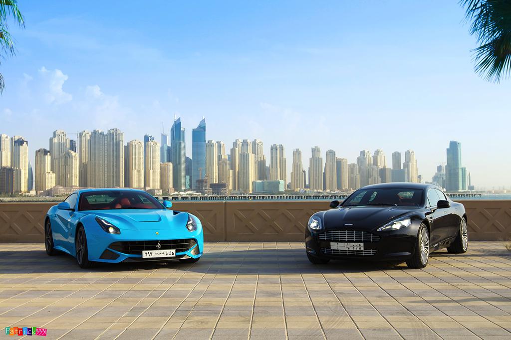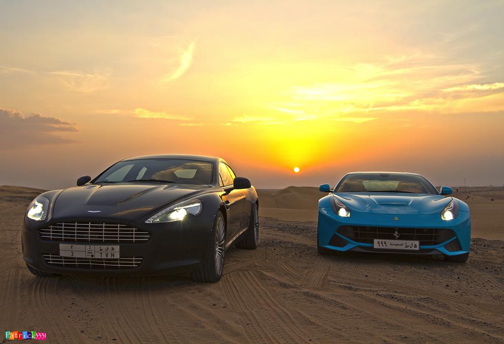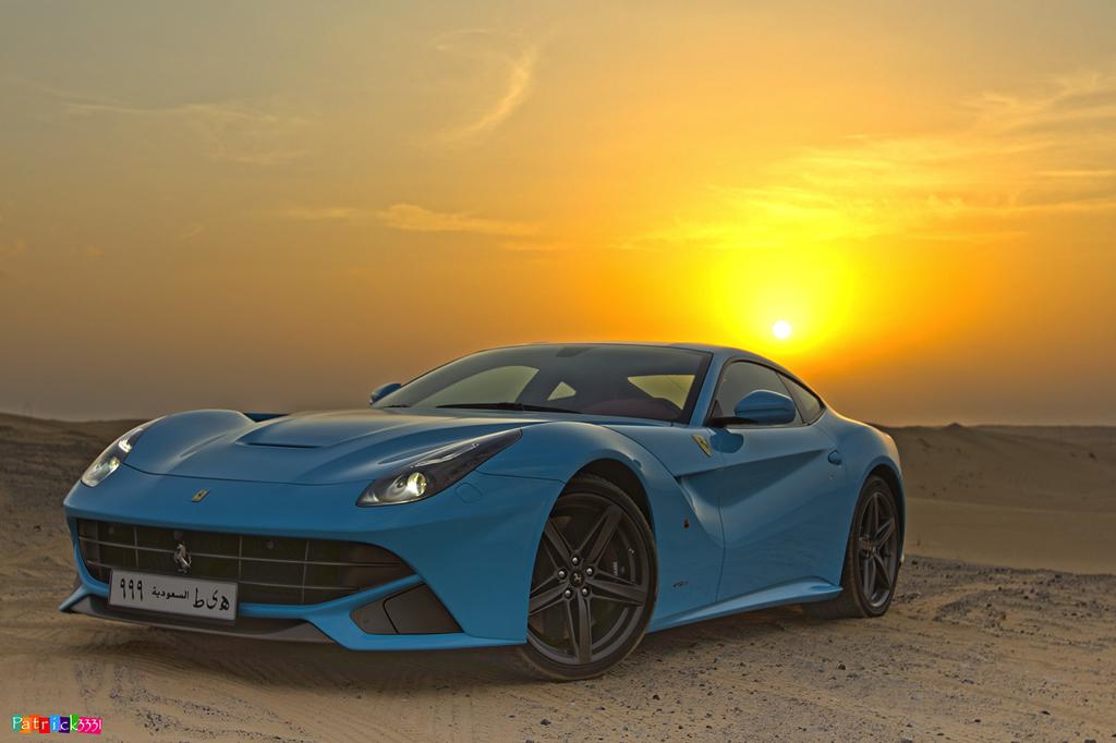 This baby blue Ferrari F12, as you would expect, is an Arab super car. These guys are huge fans of wild body kits and even wilder paint works. Rocking a brown interior and matte black wheels, this Saudi F12 recently visited Dubai where it became the subject of an awesome photoshoot in the city and the desert in company of an Aston Martin Rapide.